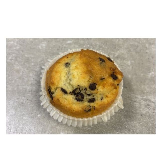 Let og luftig muffin med chokoladestykker og appelsinsmag .