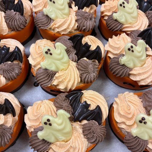 Det betyder uhyggelige kager, såsom træstammer med uhyggelige motiver på.